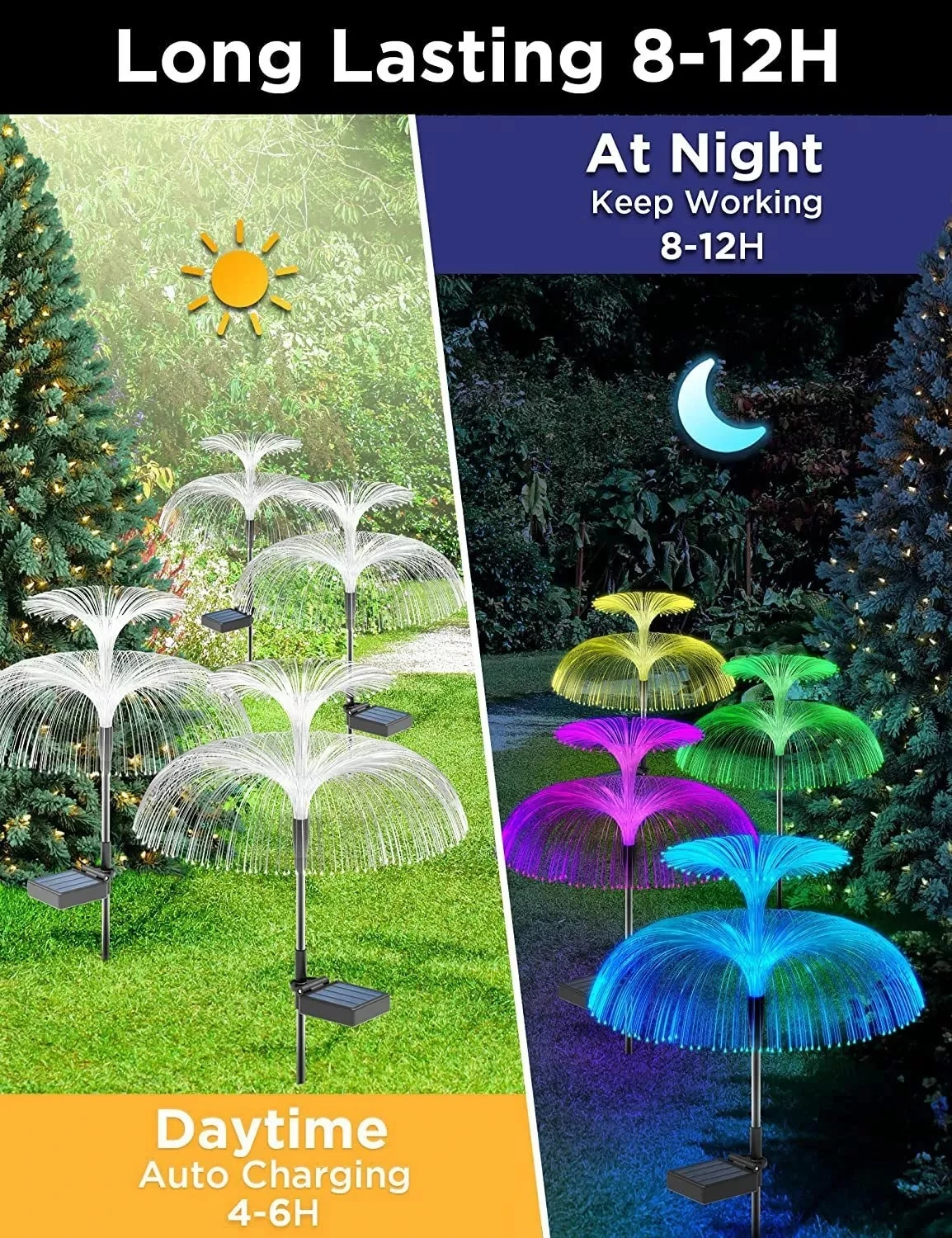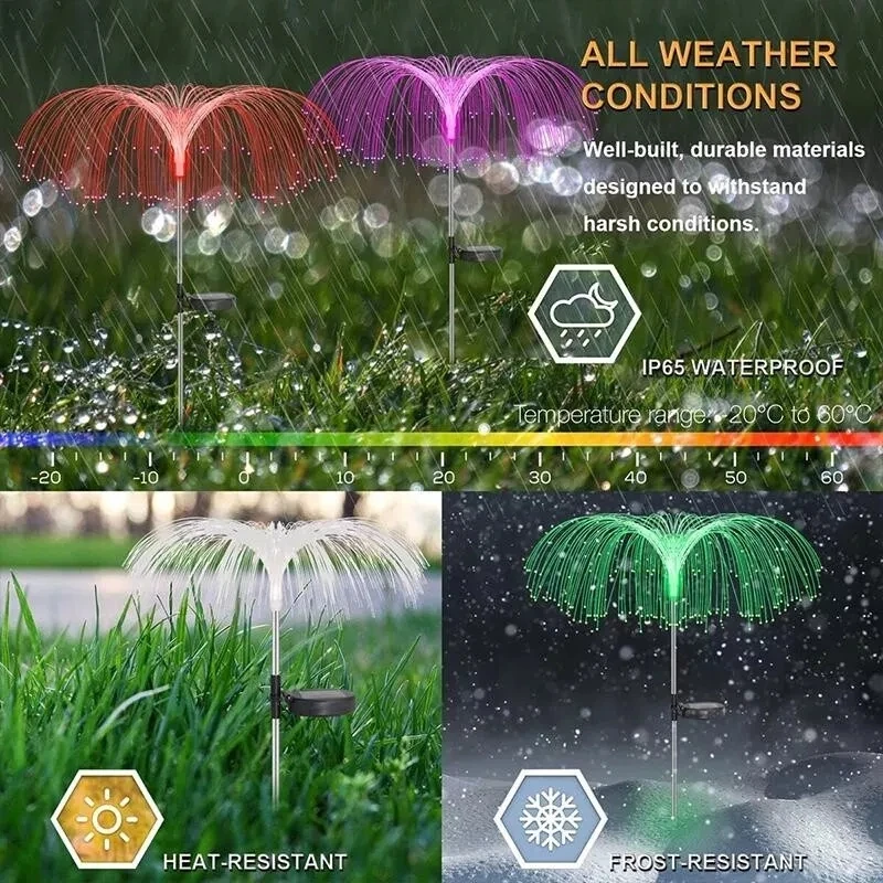 Elegant and unique design: This solar lawn street lamp is designed in the shape of a jellyfish. When the street lights are urned on at night, the 7 colors will automatically change. It will project beautiful patterns to decorate your lawn or sidewalk…