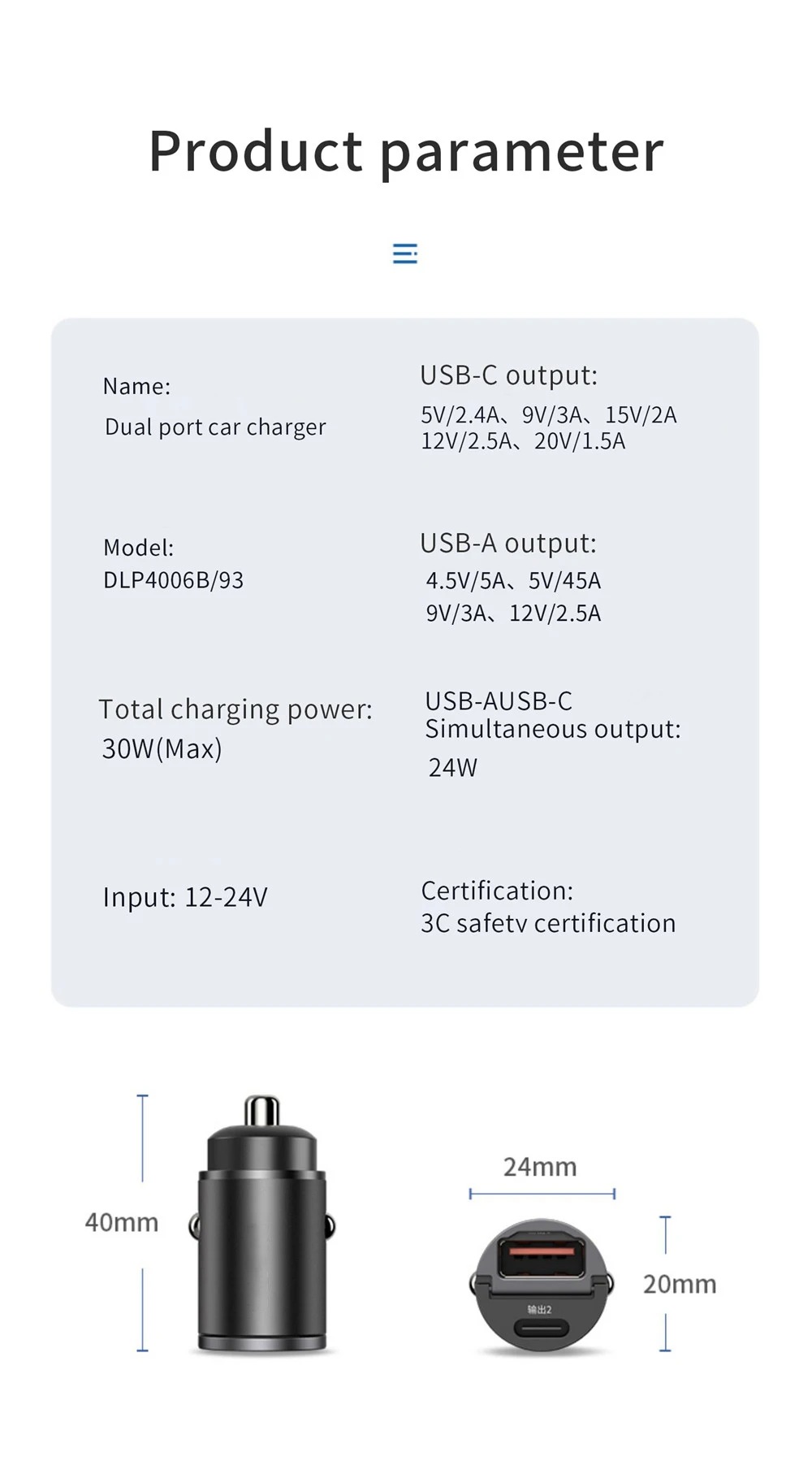 Charge your devices quickly and safely while driving with this powerful mini car charger. Designed with PD and QC3.0 fast-charging technology, it provides efficient charging for a wide range of smartphones and devices.
