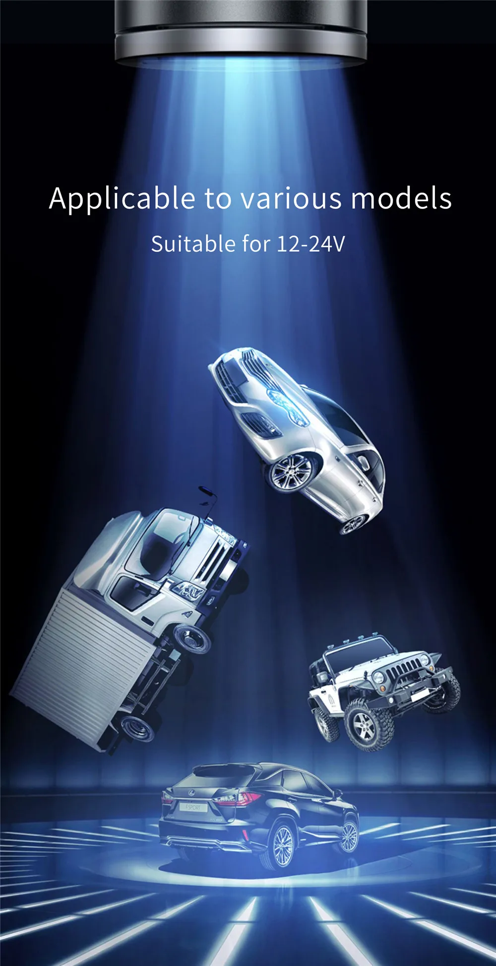 Works with 12V-24V vehicles (cars, trucks, SUVs)