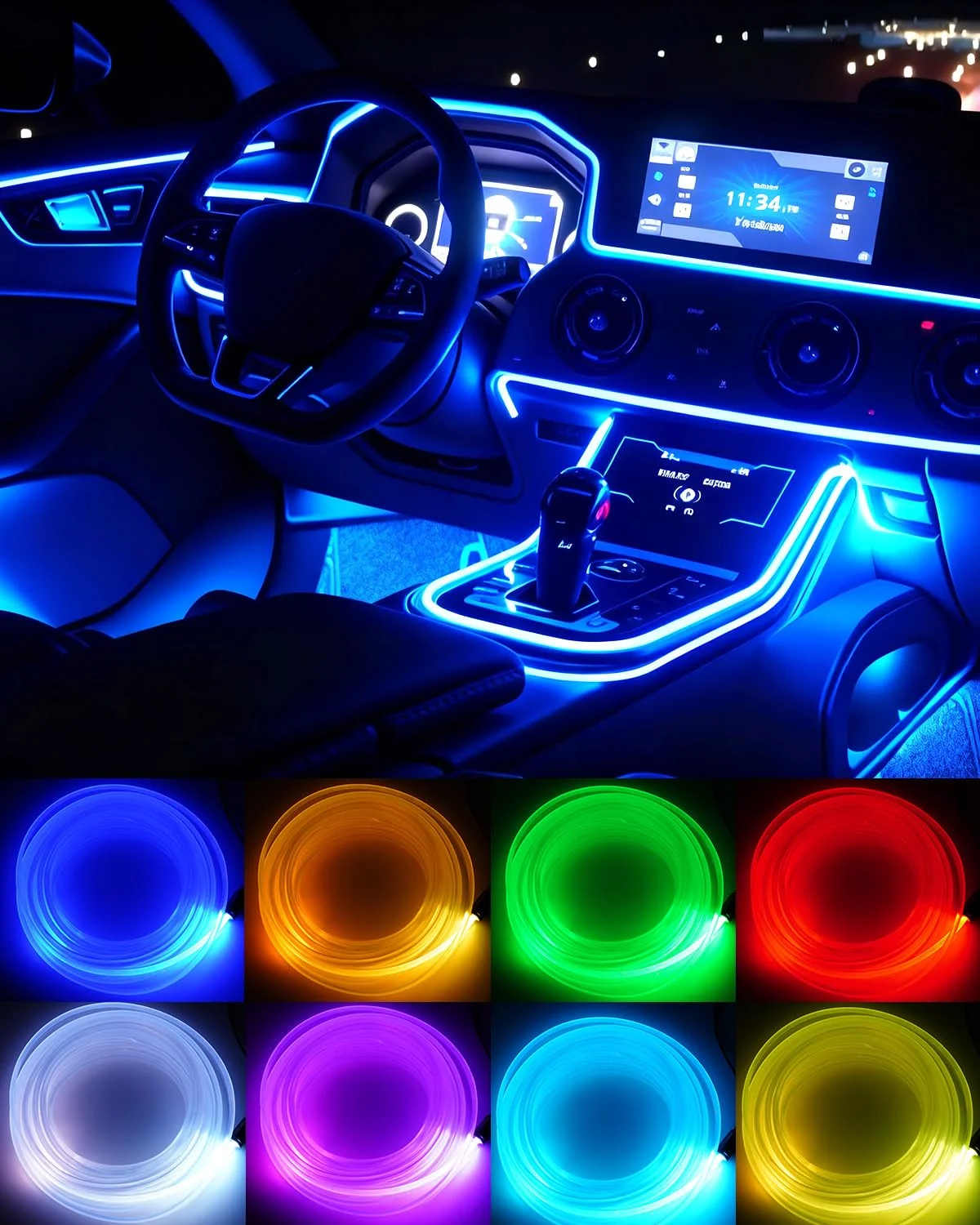 【Easy To Install】The fiber optic interior car light strip can be cut and bent freely according to your need. If the fiber optic is not bright enough, it is recommended to add one LED at each end to ensure sufficient brightness. Please use and check the lighting effect at night. The car ambient lighting kit is installed in the gap, which can provide your car with a good atmosphere effect and make your car tidy.