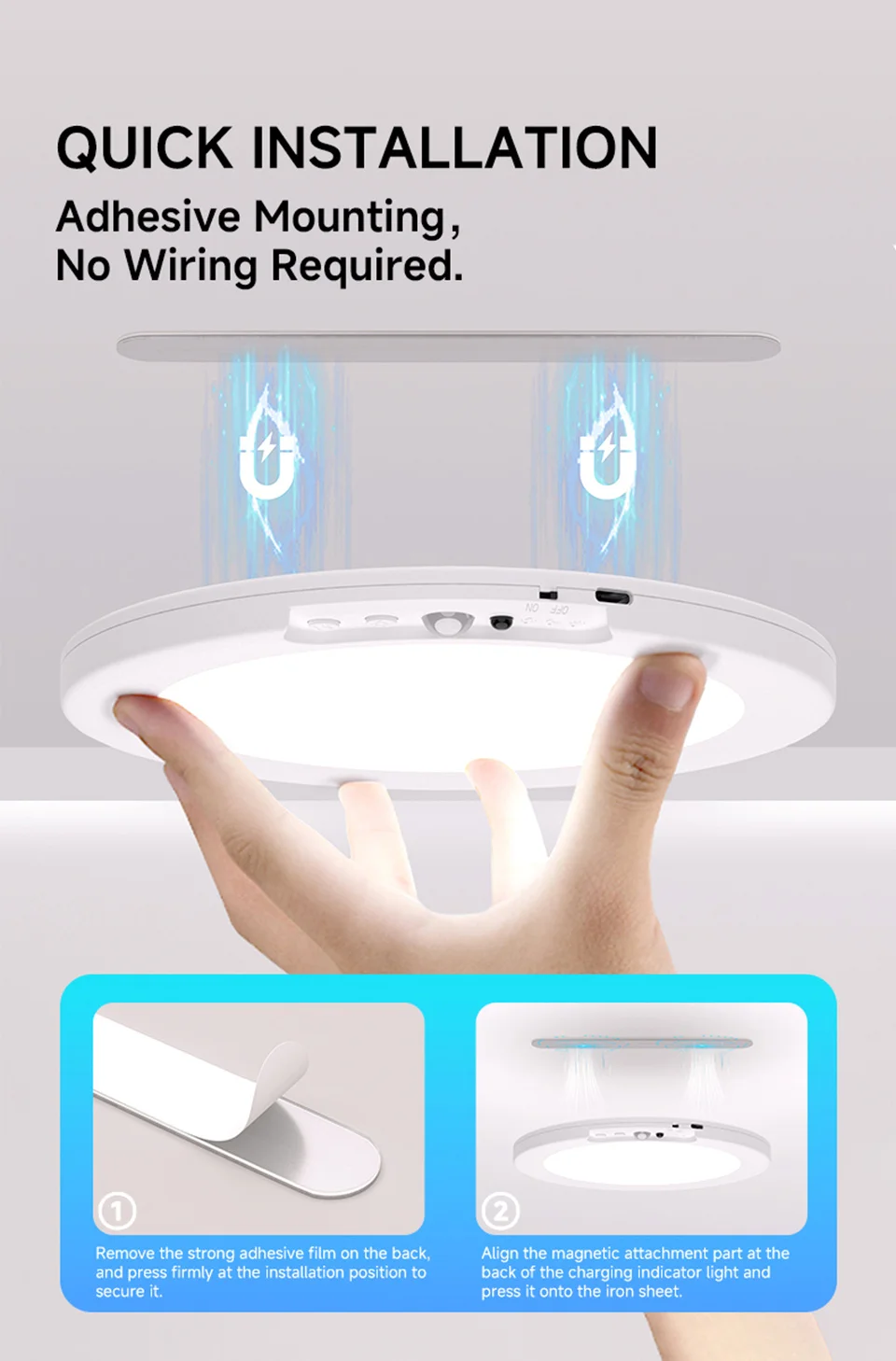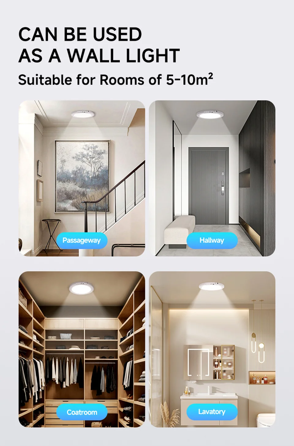 2.【Magnetic Installation & Widely Used】The magnetically designed battery operated motion sensor ceiling lights are very easy to install and do not require drilling holes to avoid damaging walls compared to other brands of motion sensor ceiling lights. These no hard wiring required motion sensor lights are perfect for dark areas without electricity such as sheds, lofts, hallways, bathrooms, garages and more.