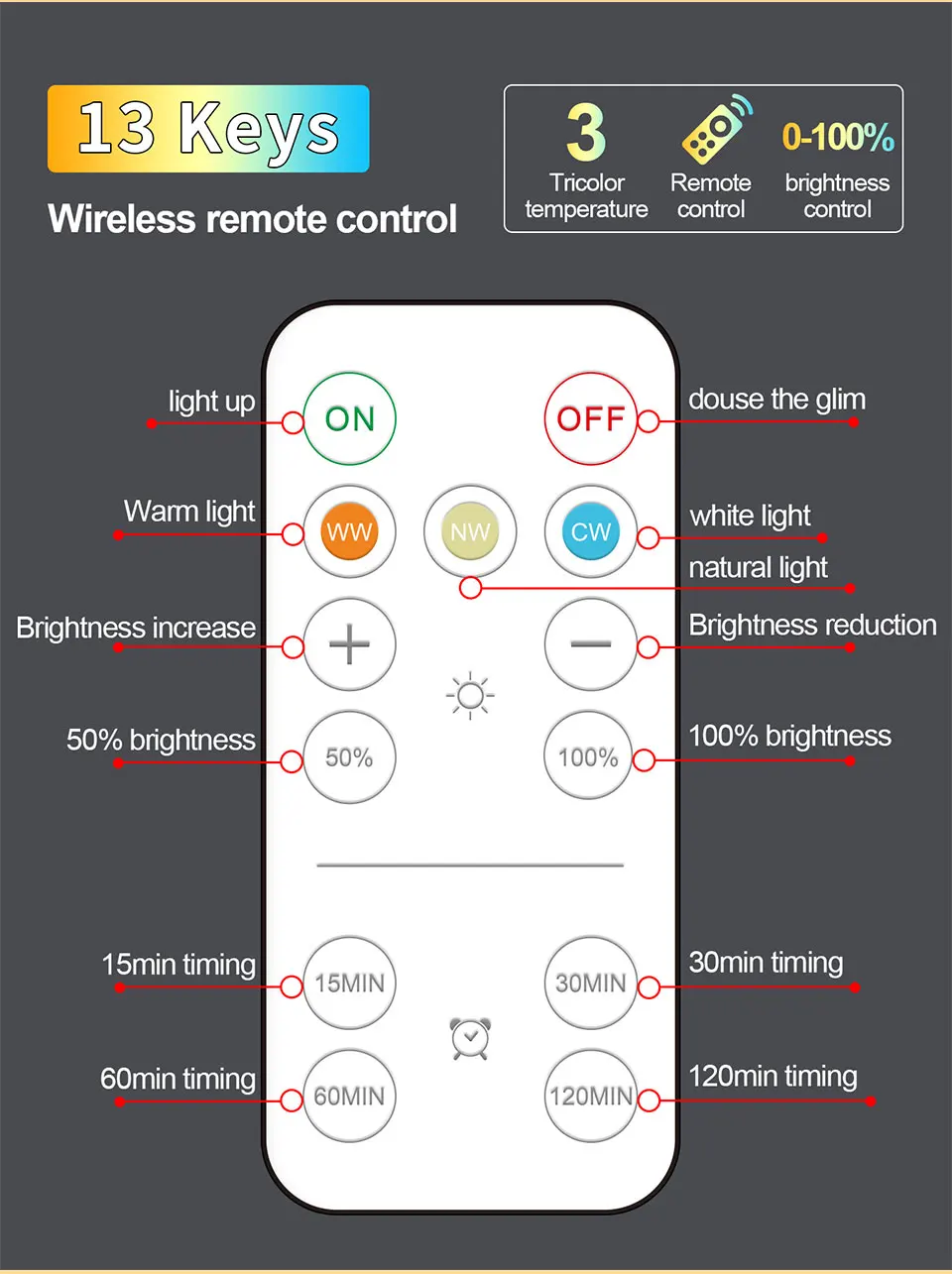 The touch switch can adjust the color. The remote control can also be used to adjust the lighting at 10-16 feet. It can not only adjust the brightness, color temperature, and on/off of the lights.