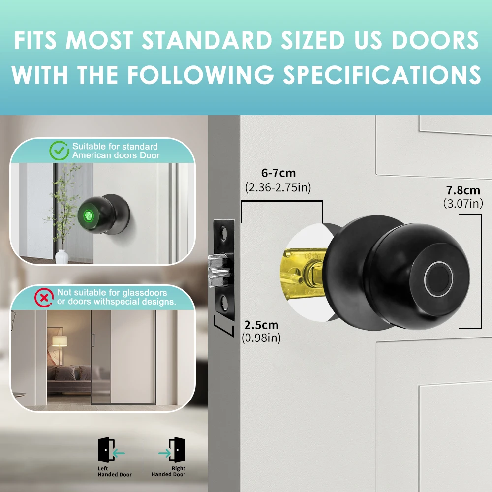 Doorknob Funcition: Biometric,Key & Keypad