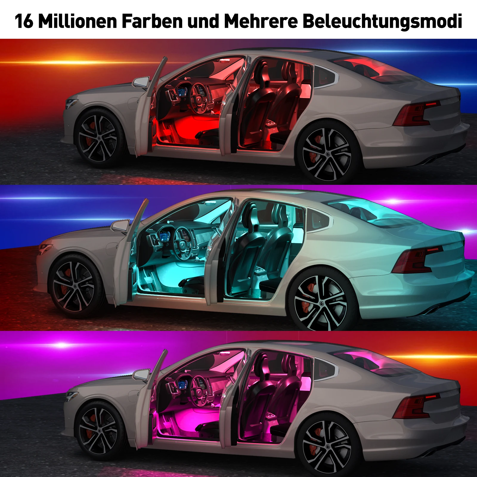 ▶【Easy to install and hide】: Fix the led lights for car to your vehicle with strong double-sided tape and screws after ensuring the surface is dry and clean. 2 Lines Design,1 main line separated into 2 branch lines,easier to hide the wiring under the car mat, without worrying about exposed wiring or an unkempt appearance..The best choice for car accessories.