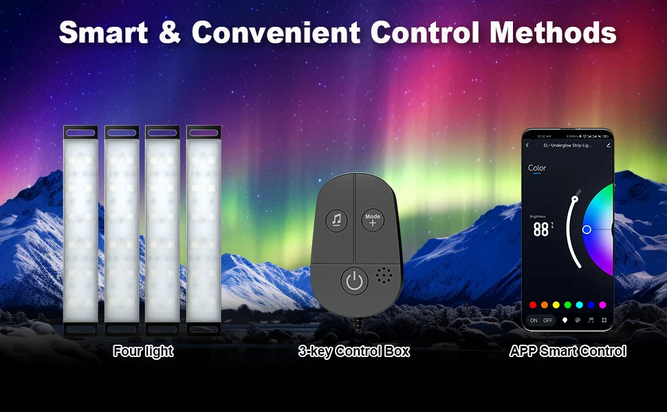 ▶【Smart Color Mode】: 16 million available colors, choose the car LED light effect according to your preference in the intuitive DIY mode through "Smart Life-Smart Living "App. The control box allows you to select your favorite colors and modes directly without using your phone, more convenient. Perfect for your different driving moods or different holiday decorations.